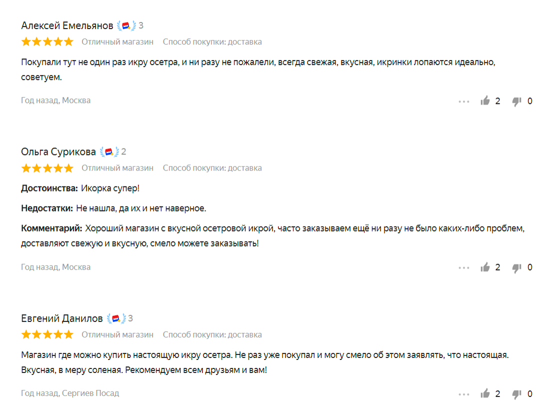 Заказывал чёрную икру не впервые и поэтому сразу уточнил по телефону все детали. Менеджер знающий, сразу ответил на все вопросы и пояснил тонкости хранения - видно что разбирается в продукции. Доставили в оговоренный срок. Продукция аккуратно запакована и защищена. На месте курьер позволил вскрыть банку и оценить качество еще до покупки. Вообщем меня все устроило - рекомендую.