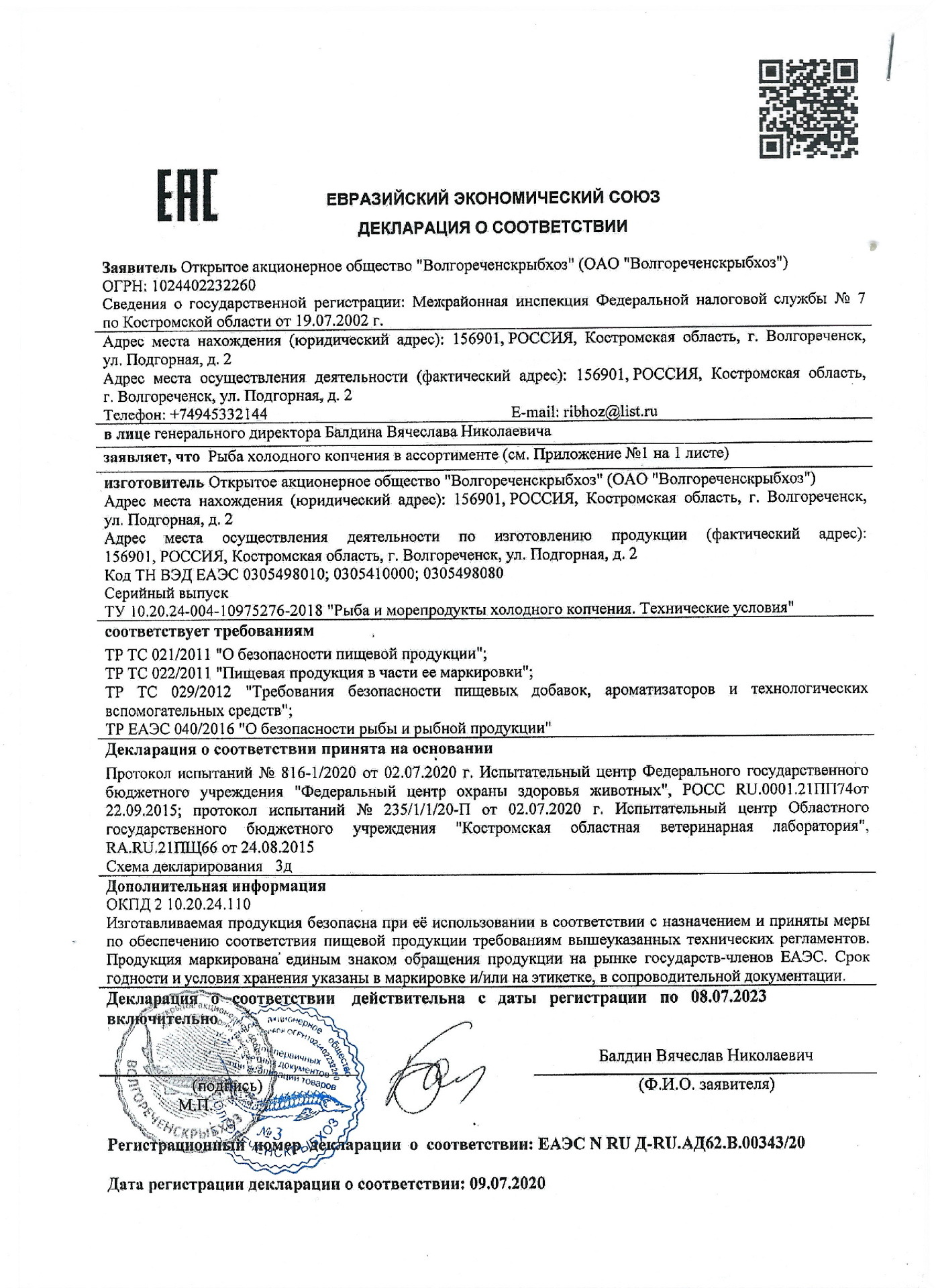 СЕРТИФИКАТЫ НА ПРОДУКЦИЮ: