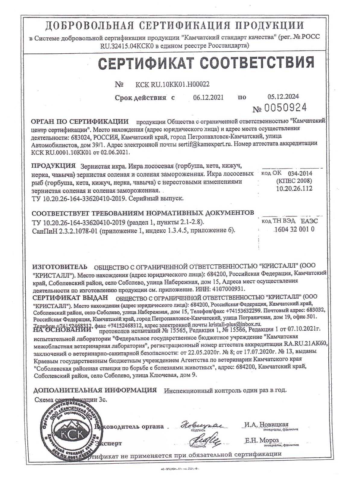 Наша икра натуральная, а значит оставляет приятное послевкусие. Никаких посторонних запахов и вкусов. Дегустируйте перед покупкой